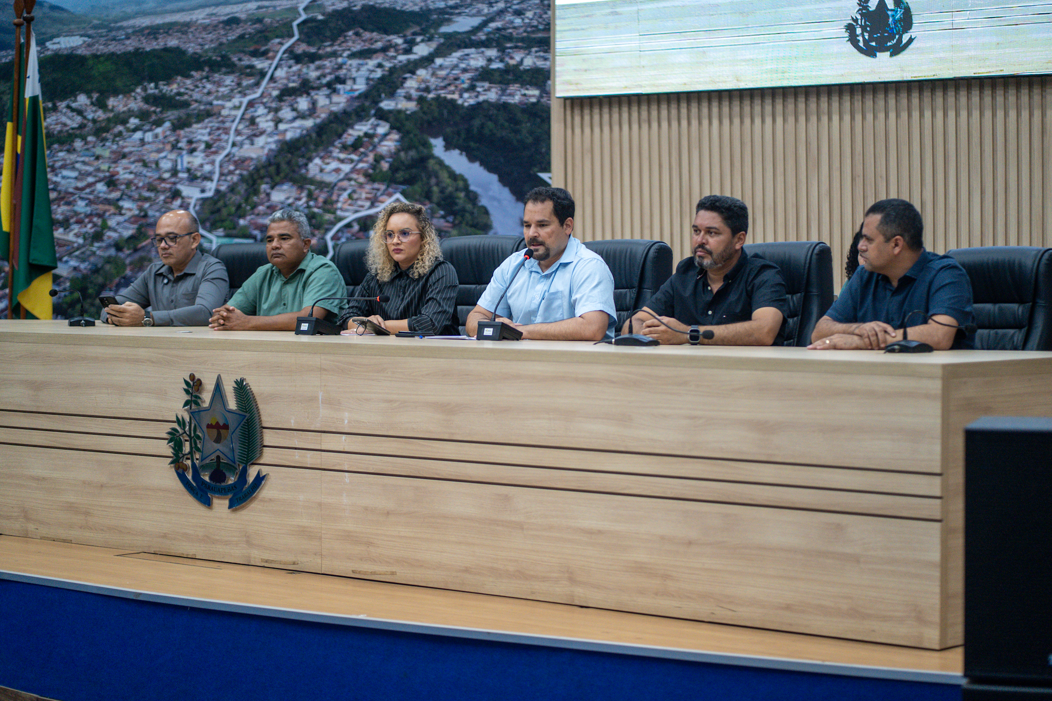 Da esquerda para a direita: Vereadores Michel Carteiro, Tito do MST, Érica Ribeiro, Alex Ohana, Leandro do Chiquito e Sadisvan Pereira