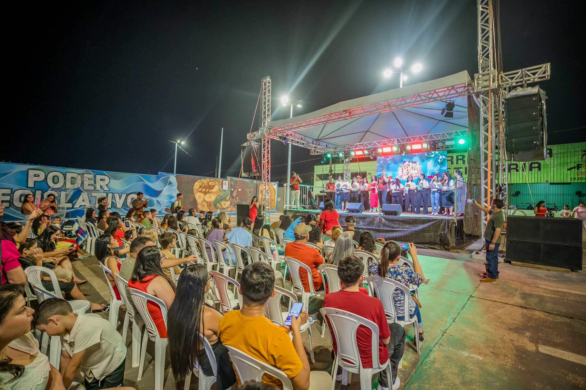 A celebração continuou com o lançamento do clipe oficial da Banda Legis, produzido especialmente para a ocasião, e, logo depois, com a encenação emocionante do Auto de Natal, que levou ao palco a mensagem de amor, nascimento e esperança, essência dessa época do ano.